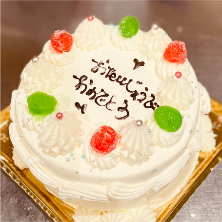 バースデー&アニバーサリーケーキのご案内です。 TEL.0568-33-8325 ・価格はすべて税込となります。・ろうそく(5本まで)とプレートは無料でお付けします。・ナンバーろうそくを有料にてご用意しております。・店頭にて当日販売分もご用意しております。・上記以外に季節のアントルメもご用意しております(店頭やSNSにてご確認ください)。・ご予約はご希望の1ヶ月前より承ります。・クリスマス期間については通常のデコレーションケーキのご予約販売は中止させていただきます。 01.デコレーションケーキ (生クリームタイプ)12㎝ ¥2,900 15㎝ ¥4,000 18㎝ ¥4,80021㎝ ¥6,200 24㎝ ¥8,900 27㎝ ¥13,00030㎝ ¥17,000★当日予約可能 02.デコレーションケーキ 生チョコタイプ(イチゴサンド)12㎝ ¥3,100 15㎝ ¥4,400 18㎝ ¥5,20021㎝ ¥7,000 24㎝ ¥9,900 27㎝ ¥14,20030㎝ ¥19,000★当日予約可能 03.ダブルベリー生クリームタイプのケーキに イチゴとブルーベリーをトッピングした デコレーションケーキ。(イチゴサンド)12㎝ ¥3,400 15㎝ ¥4,800 18㎝ ¥5,80021㎝ ¥8,000 24㎝ ¥14,000★当日予約可能【季節限定】 04.季節のフルーツ盛り合わせ 生クリームタイプ(イチゴサンド)季節のフルーツをふんだんに盛り付けました。12㎝ ¥3,300 15㎝ ¥4,700 18㎝ ¥5,70021㎝ ¥7,700 24㎝ ¥12,500★当日予約可能 05.季節のフルーツ盛り合わせ 生チョコタイプ(イチゴサンド)季節のフルーツをふんだんに盛り付けました。12㎝ ¥3,500 15㎝ ¥5,100 18㎝ ¥6,10021㎝ ¥9,100 24㎝ ¥14,000★当日予約可能 06.白いお皿のデコレーションシンプルな白いお皿の上には9cmの小さめなケーキとこぼれ落ちそうなくらいのフルーツを飾りました。¥5,000★当日予約可能 07.リトルプリンセス (イチゴとブルーベリーサンド)ピンクのドレスをまとったドールケーキ。¥4,800★前日までに予約 08.フルーツタルト (生クリームタイプ)タルト生地にカスタードクリームを絞り、季節のフルーツをふんだんに盛り付け生クリームを添えました。(写真は一例です)15㎝ ¥4,600 18㎝ ¥5,600★前日までに予約 09.ジュエルハート (イチゴサンド)ピンクのハート型のケーキにイチゴとブルーベリーを盛り付けました。15㎝ ¥4,800 18㎝ ¥5,800 21㎝ ¥8,000★前日までに予約【季節限定】 10.グランショコラショコラスポンジにイチゴをサンドしたチョコレートケーキ。15㎝ ¥4,800 18㎝ ¥5,800 21㎝ ¥8,000★前日までに予約 11.チョコデコ(フルーツ不使用)チョコバタークリームをサンドしたチョコレートコーティングケーキ。15㎝ ¥4,500 18㎝ ¥5,200 21㎝ ¥7,000★3日前までに予約 12.濃厚チーズケーキクリームチーズ、サワークリームをたっぷり使用し焼き上げた、滑らかな口どけの濃厚な味わいのチーズケーキ。15㎝ ¥4200★3日前までに予約 13.フルーツゼリーの デコレーション季節のフルーツをたっぷり使用した ホールタイプのゼリーです。15㎝ ¥5,000 18㎝ ¥6,000★3日前までに予約 14.アニマルデコレーションわんちゃん、ネコちゃん、パンダさん、ブタさんなどのかわいいアニマルケーキ。いちごサンドのショートケーキです。9㎝ ¥2,800★3日前までに予約 15.レトロケーキ (杏ジャムサンド)昔懐かしい バタークリームケーキ。15㎝ ¥4,500 18㎝ ¥5,200 21㎝ ¥7,000★3日前までに予約 16.モンブラン 期間限定詳細はお問合せください。12㎝ ¥4,000 17.ジェンダーリビールケーキ赤ちゃんの性別をお披露目するケーキ中身はイチゴまたはブルーベリー 選べます。15㎝ ¥4,200 tel.0568-33-8325 春日井市神明町25−2営業時間 10:00~19:00(日曜日・月曜日・祝日の閉店時間は18:00となります)定休日:火曜定休/月曜不定休 ※詳しい定休日につきましては当店カレンダーをを覧下さい。